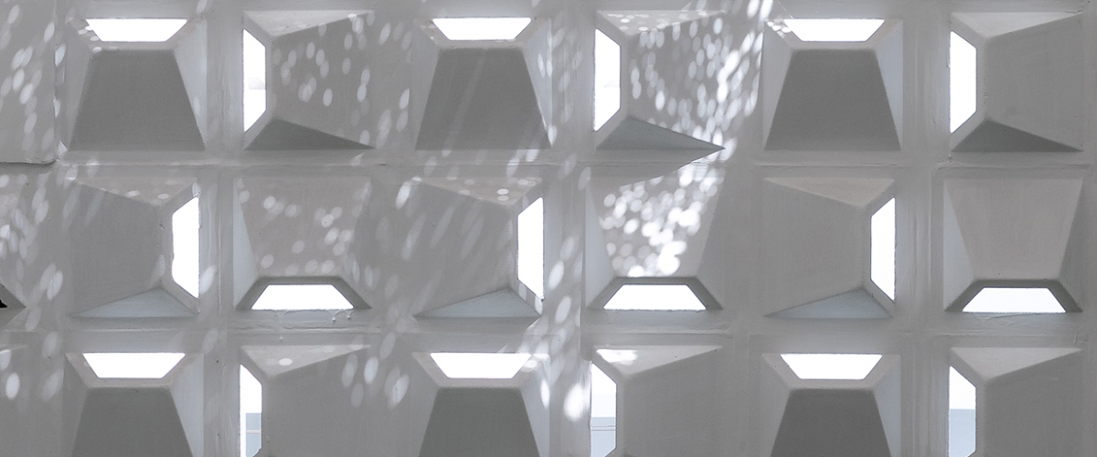 + Thiết kế sử dụng gạch bông gió để đảm bảo chặn được nước mưa từ bên ngoài, nhưng gió có thể đối lưu xuyên các phòng từ mặt tiền đến cuối nhà (Xem mặt cắt). Cách lựa chọn và sắp xếp các viên gạch bông gió cũng được Kiến trúc sư cân nhắc để các hướng khác nhau để mang tính thẩm mỹ cũng như có chức năng thoát nước, thông gió.